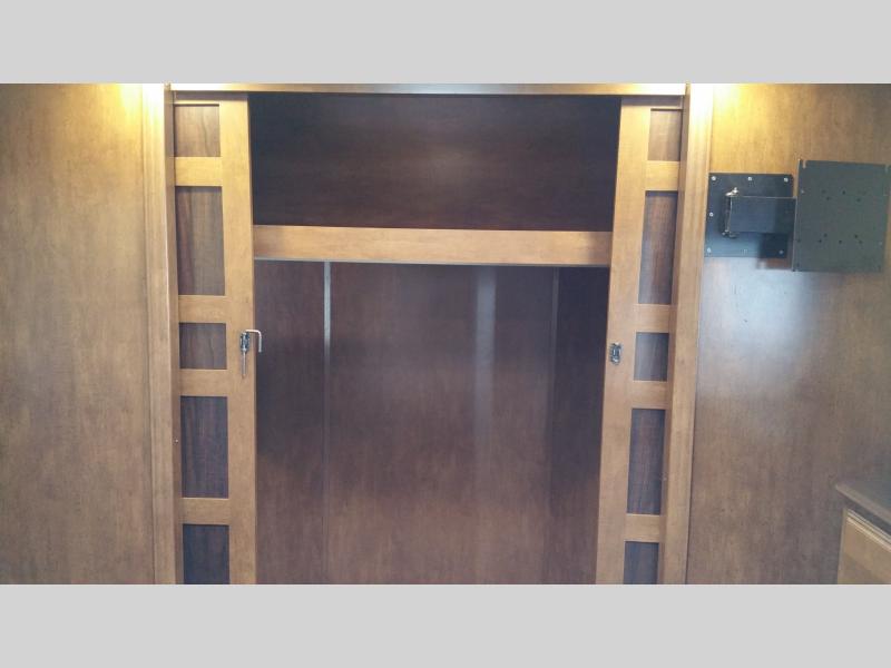 What I liked most: Bunkhouse has lots of storage and a very nice appearance. The lighting in the kitchen and living area is really growing on me. Media center and fireplace combo looks great. The bedroom has a very nice wardrobe.