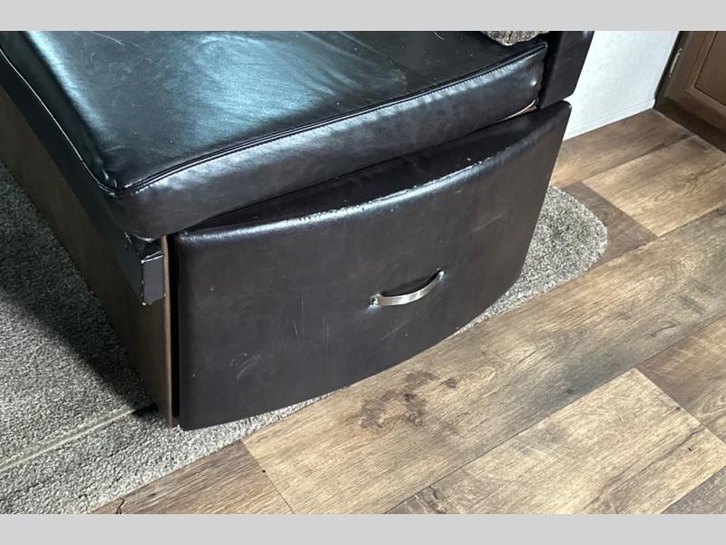 Straight in from the door along the road side, you will find a slide out jumbo dinette. This provides a great deal of seating for meals, and allows more foot traffic space throughout the unit.