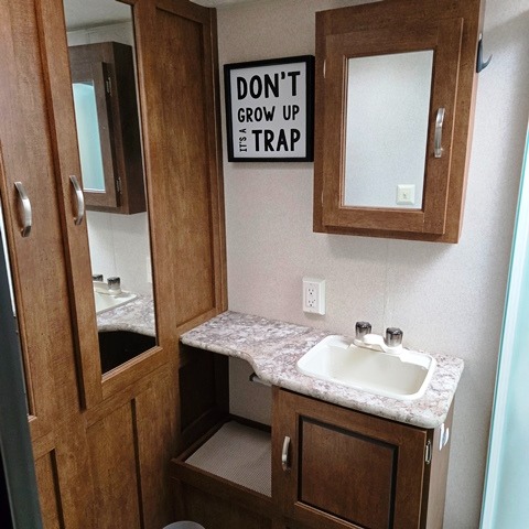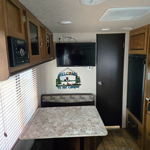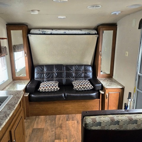 This Wildwood X-Lite travel trailer by Forest River is the perfect couples trailer featuring a rear bath layout, and a Murphy bed for added interior space! It includes an equalizer hitch, upgraded entrance steps, towing mirrors, window in entrance door, and winter cover. Don't miss out on an opportunity to own this wonderful and clean pre-owned RV!
