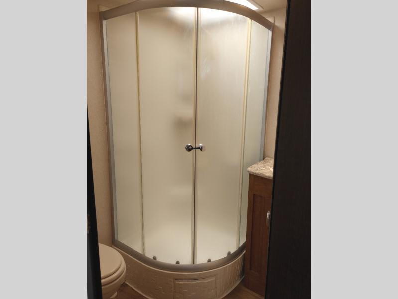 Model 232RBXL features a handy wardrobe to your immediate left as you step inside. Straight ahead a convenient location for a full bath including a toilet, radius shower, and lavatory with overhead medicine cabinet.