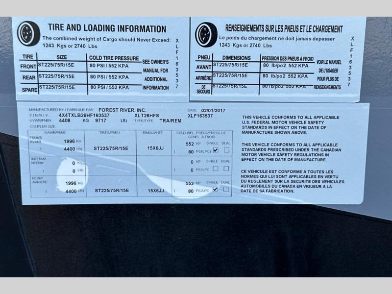 Used 2017 Forest River RV XLR Hyper Lite 26HFS Toy Hauler Travel Trailer