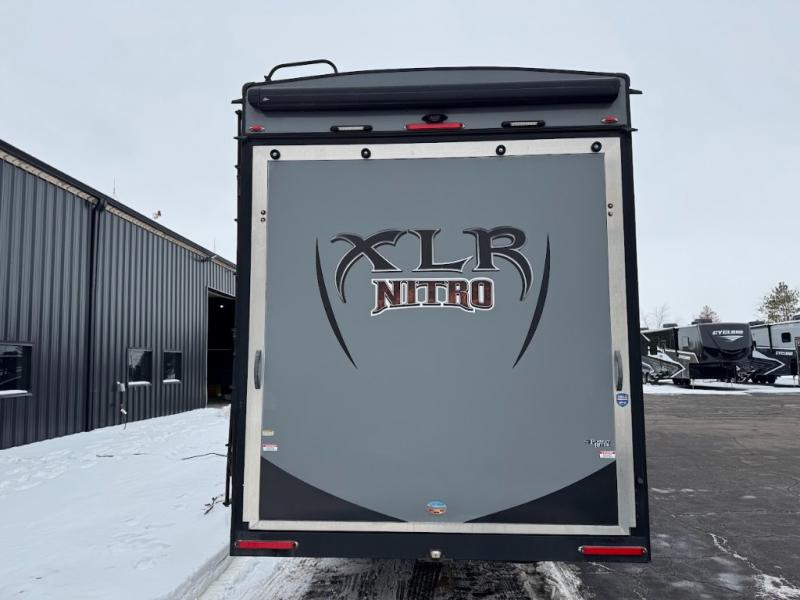 Load up your outdoor toys, your family, and start your next weekend adventure in the XLR Nitro 36TI5 toy hauler fifth wheel. This model features triple slide outs, a rear cargo area, and plenty of interior space!