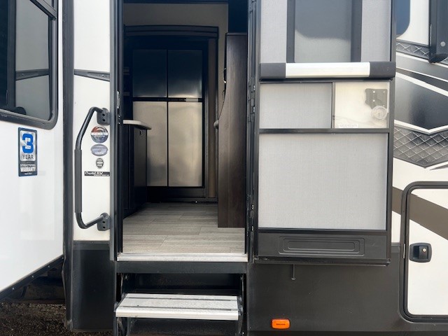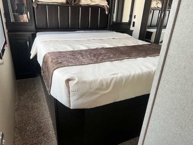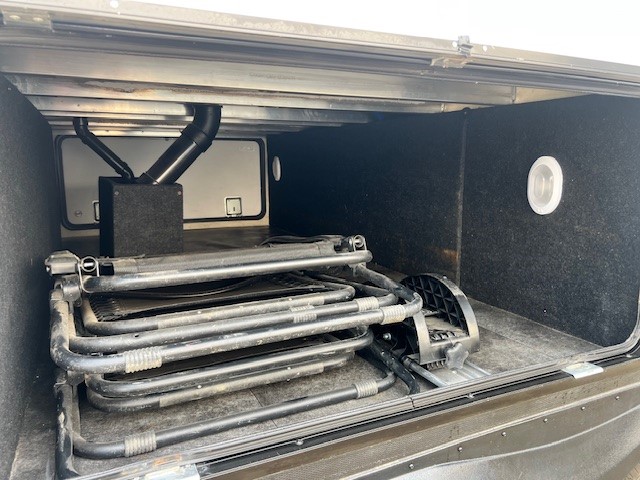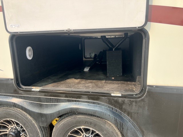 Off the rear beneath the master bedroom you will find a deep garage that is perfect for your street bike or other adventure gear. Loading and unloading will be easy using the rear ramp door.