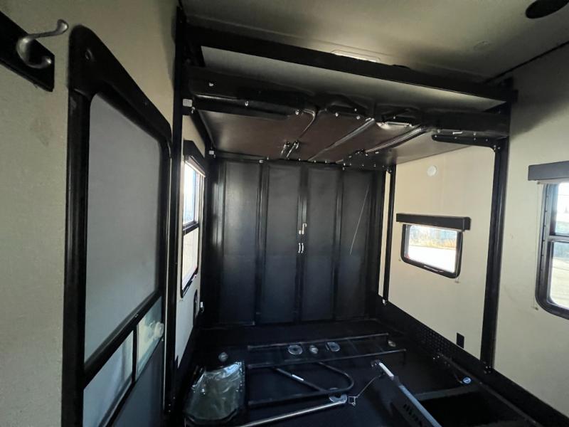 Enter the garage area via the side man door, or rear ramp which makes loading and unloading your toys easy. You may enjoy the ramp door as a raised patio area as well. Inside the cargo space find overhead cabinets, plus washer/dryer prep and TV prepped space. You can also increase your living space by adding optional happi-jac rollover sofas/table with a top bed that stores neatly up at the ceiling when not in use.