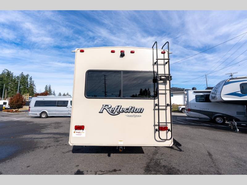 Enjoy all of your camping trips on the open road in this Grand Design Reflection 26RL fifth wheel featuring triple slides, a rear living layout and kitchen island, plus a front private master bedroom.