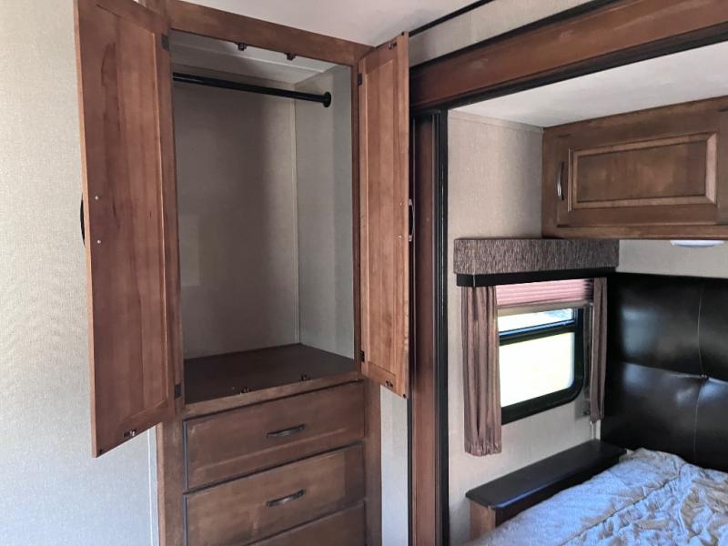 The front bedroom will provide you with a great night's rest. Here you will find a queen or optional king size slide out bed with nightstands and overhead storage, a dresser, TV prepped space, and a full front wardrobe with washer/dryer prep.