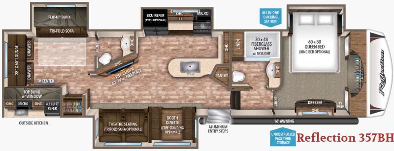 You are sure to enjoy the exterior unobstructed pass-thru storage and all-in-one docking station.