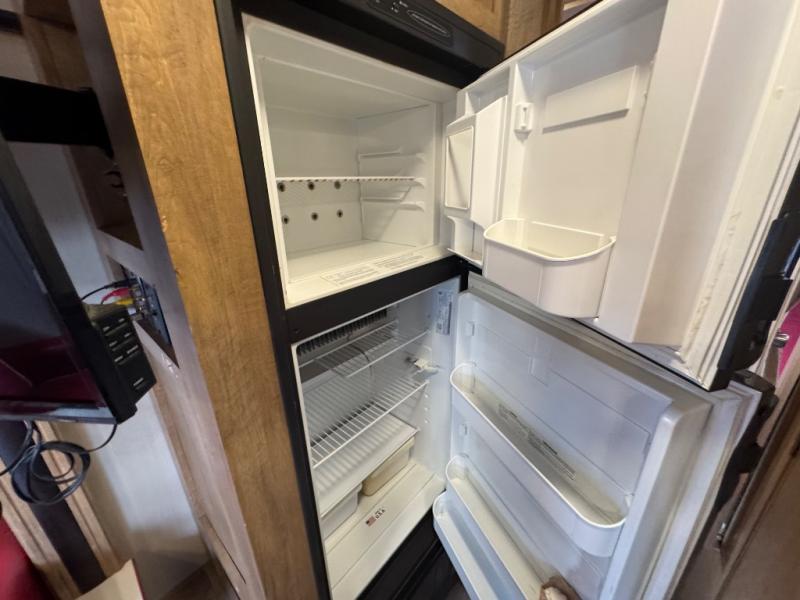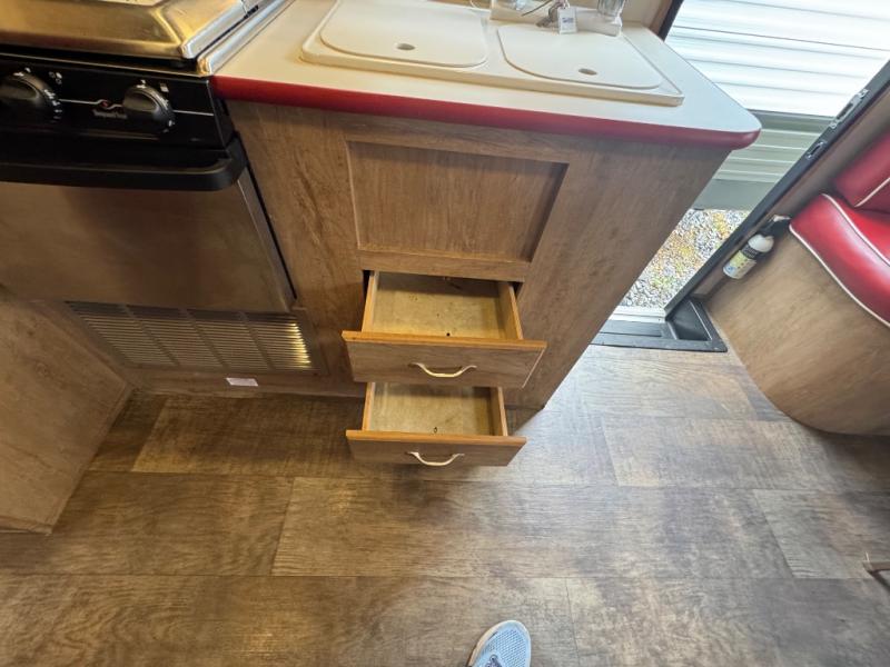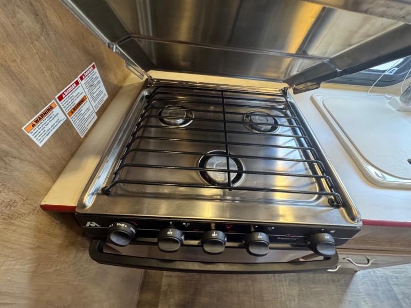 As you step inside model 23RSS, to your left you will find a rear booth dinette with overhead storage. This is a great place for meal time or relaxing. If you need additional sleeping space, the dinette can quickly be converted for one added family member or guest.