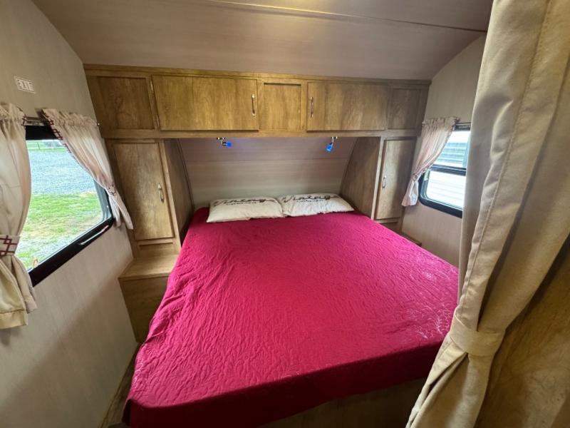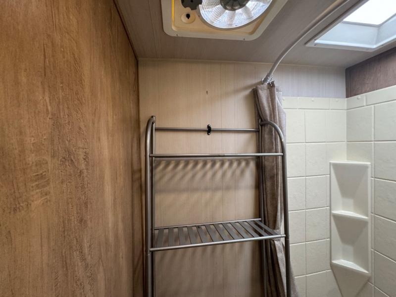 Straight in through the door you will find a slide out jack-knife sofa including end tables, and overhead storage in both upper corners. The sofa provides even more space for overnight guests. Just off the slide you will enjoy an entertainment center where you can add a flat screen TV.