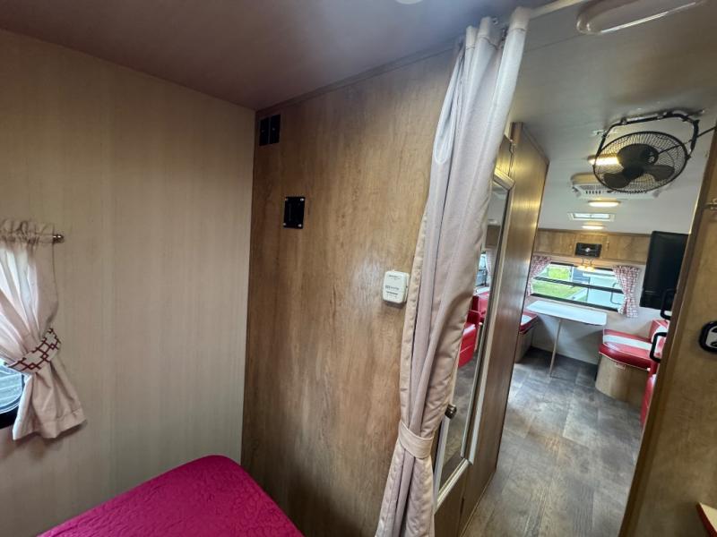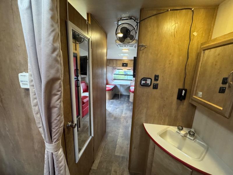 What I liked most: I like the vintage style, the red vinyl, and the knotty pine interior. I chose this model because of access to the bed on both sides, the dinette surrounded by windows, and a deep shower pan that won't leak on the floor when you bump the curtain. I also like that the toilet is not in the shower. My husband wanted 2 axels. We have the trailer 2 months and have camped 4 times. We're on a huge learning curve, but everything has worked perfectly. Our dealer, Big Country RV, Redmond, Oregon, checked everything out and gave us a walk through that was very helpful.