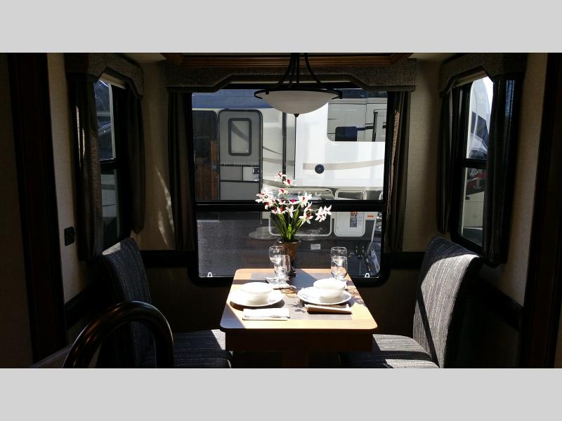 What I liked most: Triple slide makes it very roomy inside. The TV has lots of storage around it for movies and game consoles. Plenty of kitchen storage. The dining area is on its own slide and feels like it's own little room. Controls are right there when you walk in.