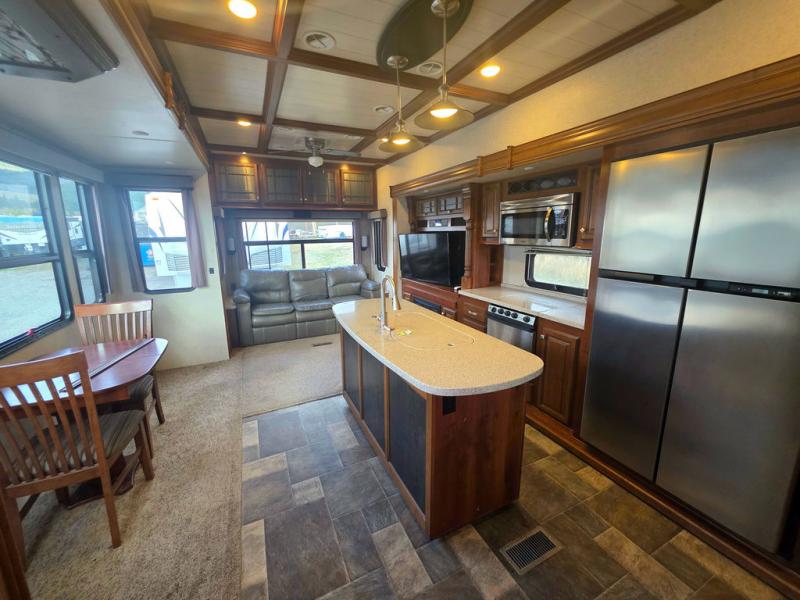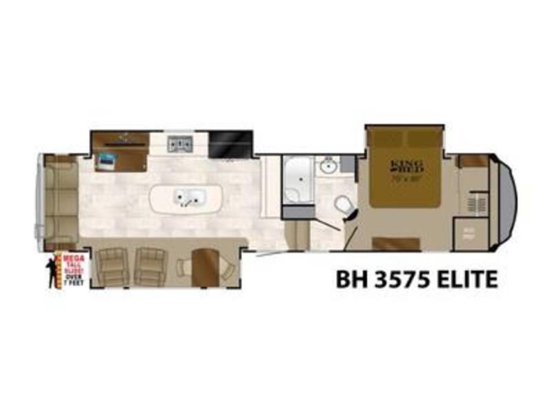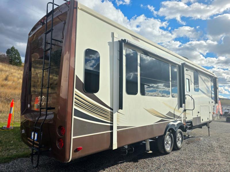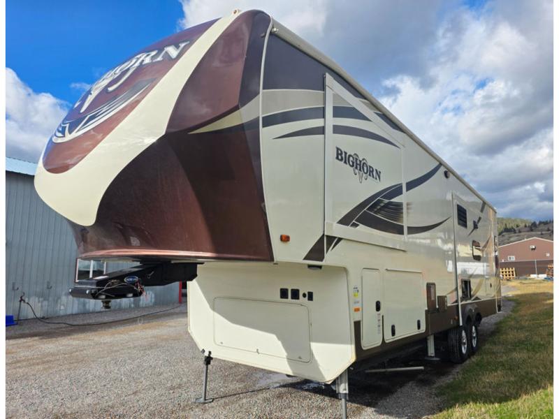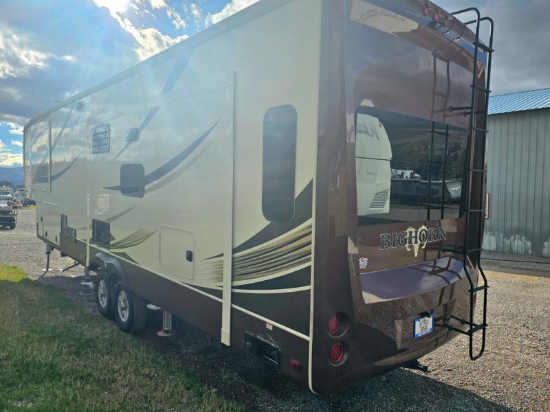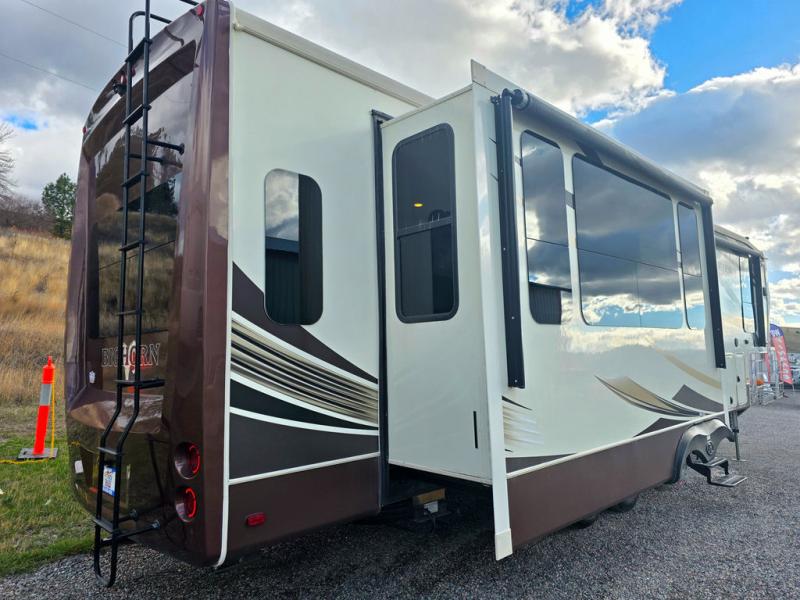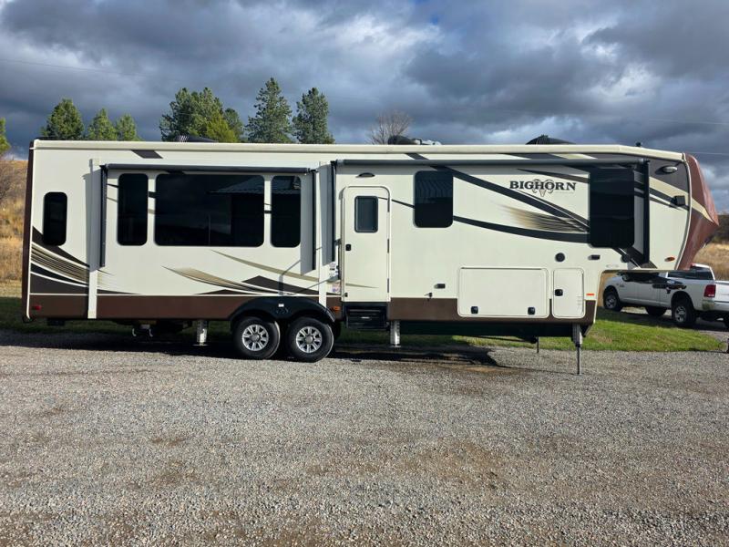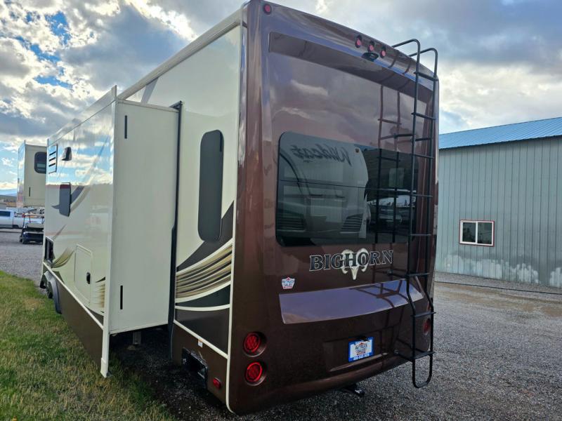 This Heartland Bighorn luxury fifth wheel model 3575EL will have you enjoying your every adventure! This model features a rear living layout, Mega tall slide outs, a convenient kitchen island, and a king size bed in the master, plus more!