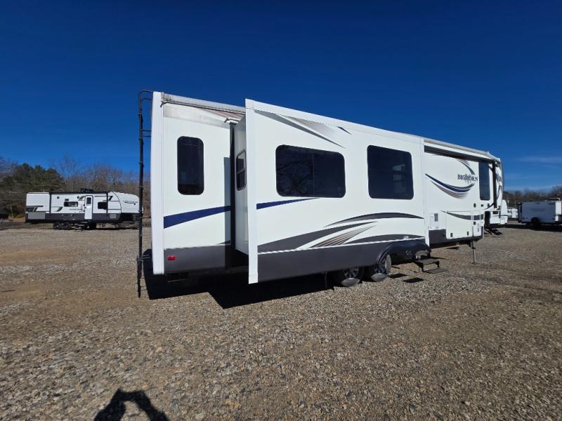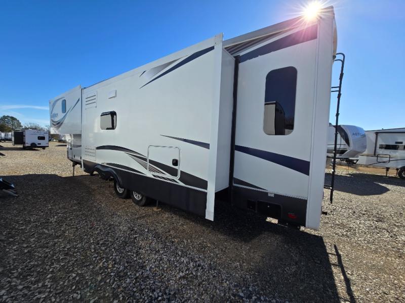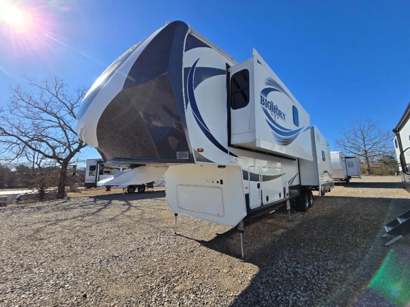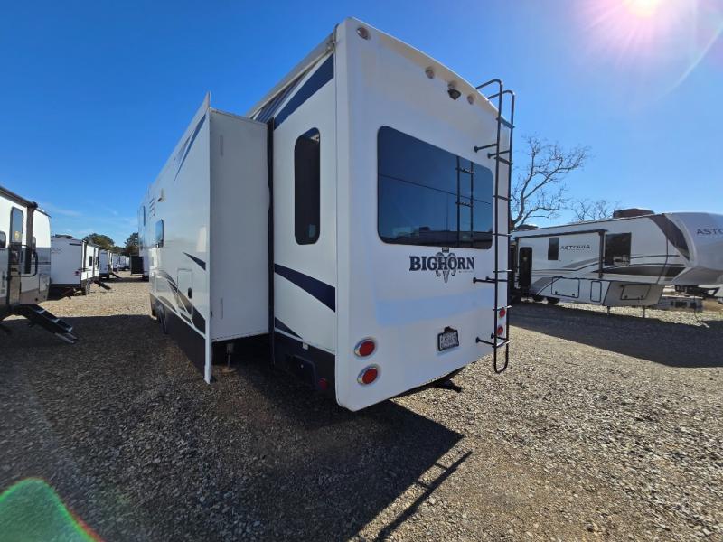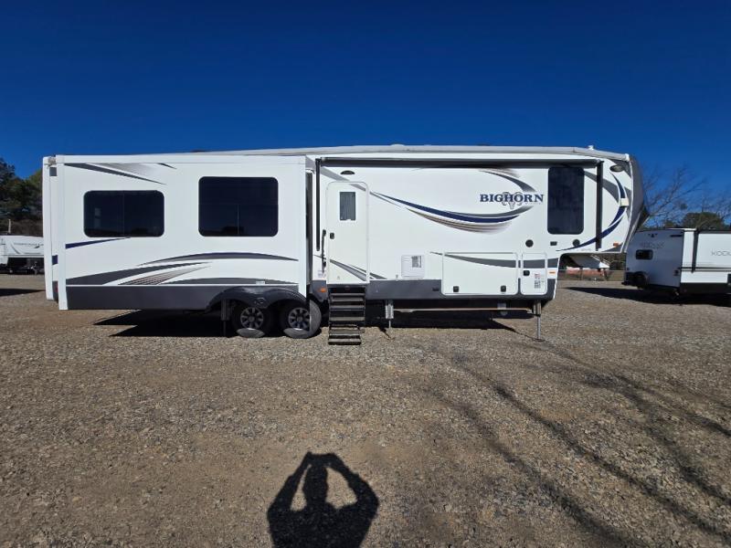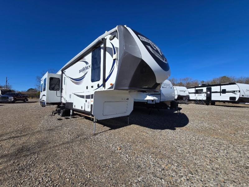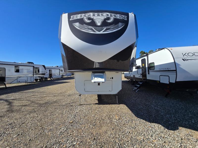 Enter this Bighorn fifth wheel model 3585RL by Heartland and see how convenient all of your future camping trips can be with triple slide outs for added interior space, a kitchen island for added prep space, plus more!