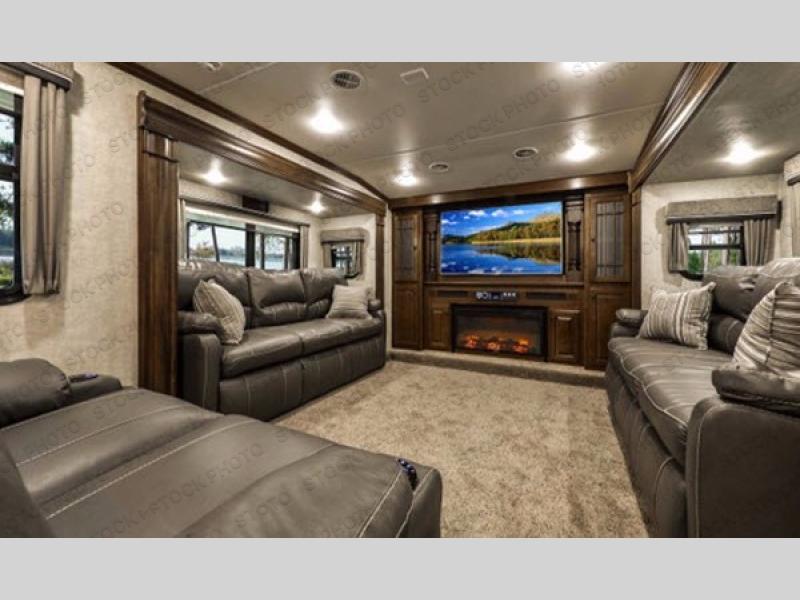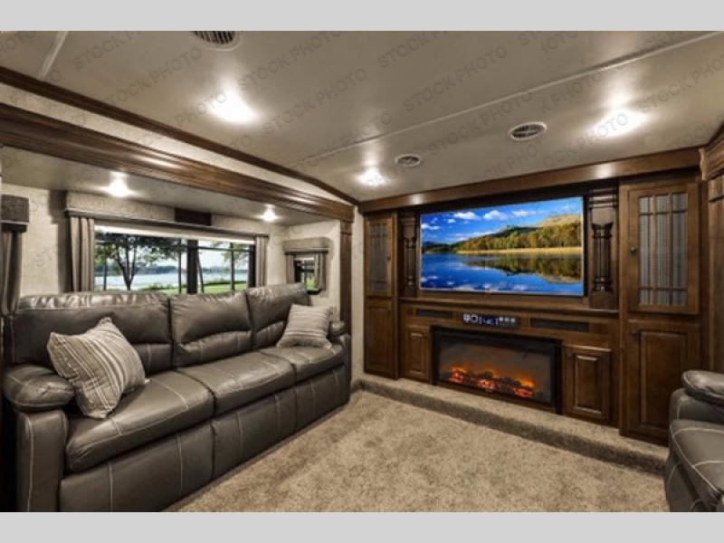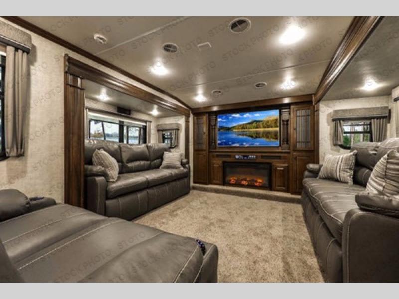 This Bighorn fifth wheel by Heartland RV features a front living area, a rear bedroom with king bed, and FIVE slides for added interior space!