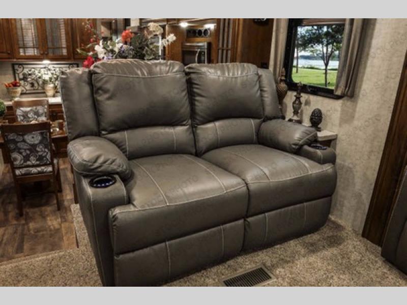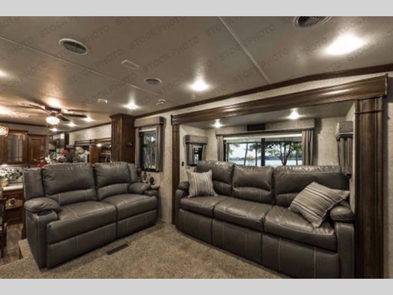 As you enter notice the front living room at the top of the steps to your right when you enter. You can step up and find dual opposing slides with sofas facing one another. The perfect gathering spot for conversation or a movie with the front entertainment center including a 55" LCD TV. There is also a smaller sofa/loveseat for more seating in the room.