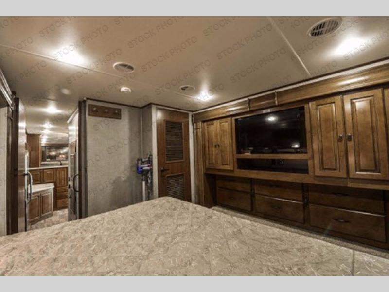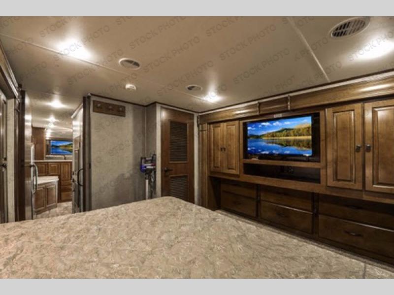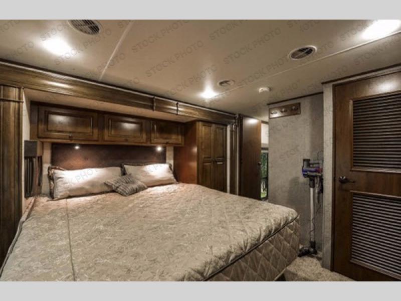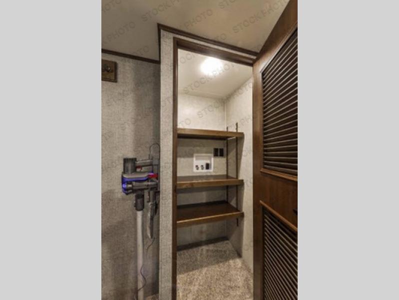 Head up steps in the rear to a spacious master retreat. Inside the bedroom you will find a king bed slide out with nightstand and storage. Opposite the bed is a large wardrobe slide out, plus a closet that has been prepped for a washer and dryer if you choose to add, and so much more!