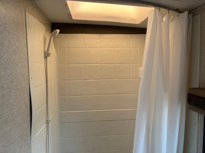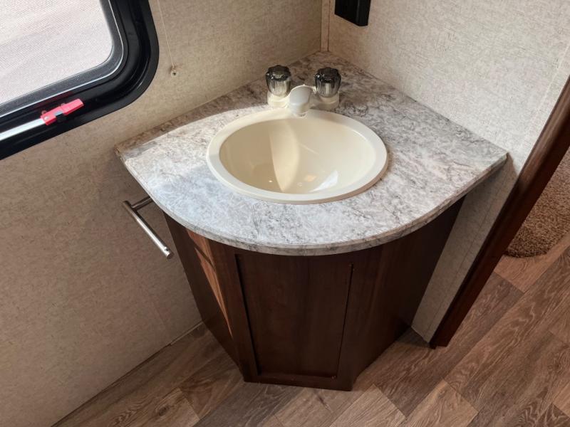 What I liked most: Great placement of reading lights in master bedroom. Even for a shorter travel trailer the still feels plenty open inside in the kitchen, dining area. The bathroom has a window which I like, but a bit concerned that it's directly across from the toilet, just have to use the shade, but I like the window.