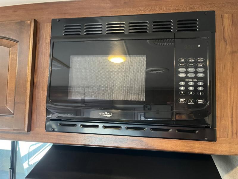 In the kitchen you will easily be able to prepare and cook food as well as clean up with the three burner range, refrigerator, and double kitchen sink. There is also plenty of storage with overhead cabinets, lower cupboards and drawers, and a pantry that is located just off the dinette slide.