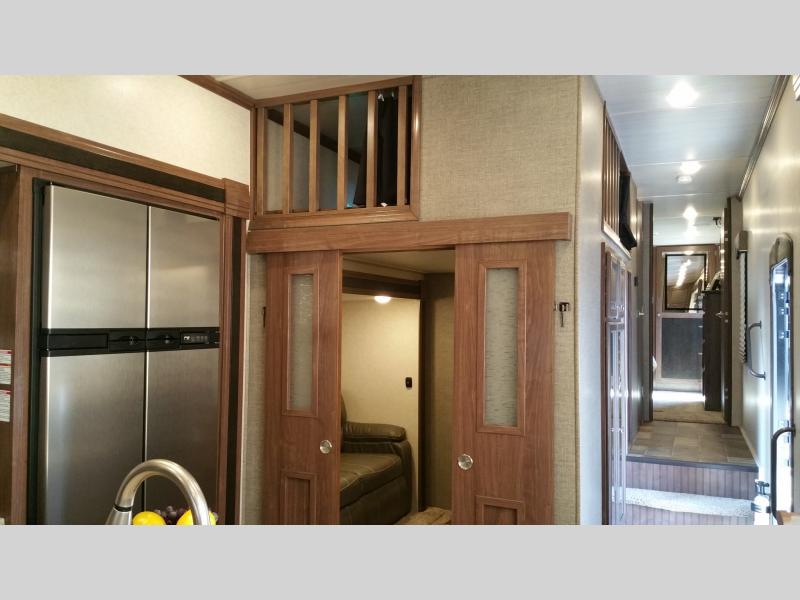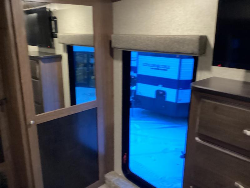 A true highlight of the 390MBL is its separate mid-bunk room. This flexible space works perfectly as a kids’ room, guest room, hobby room, or even a private office. The loft above adds bonus sleeping capacity or additional storage.