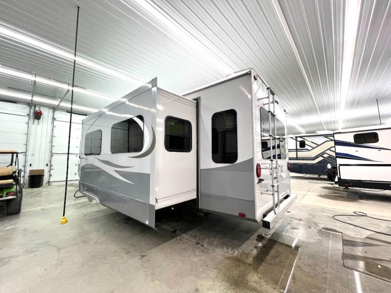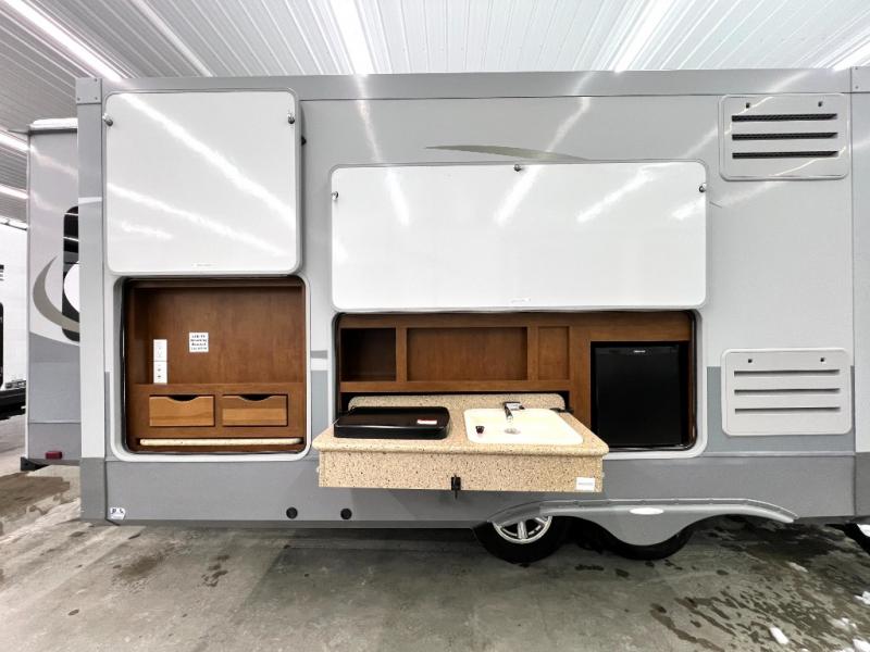 On the outside of this unit enjoy an exterior kitchen which features a refrigerator, single sink, and three burner cook-top, plus so much more!