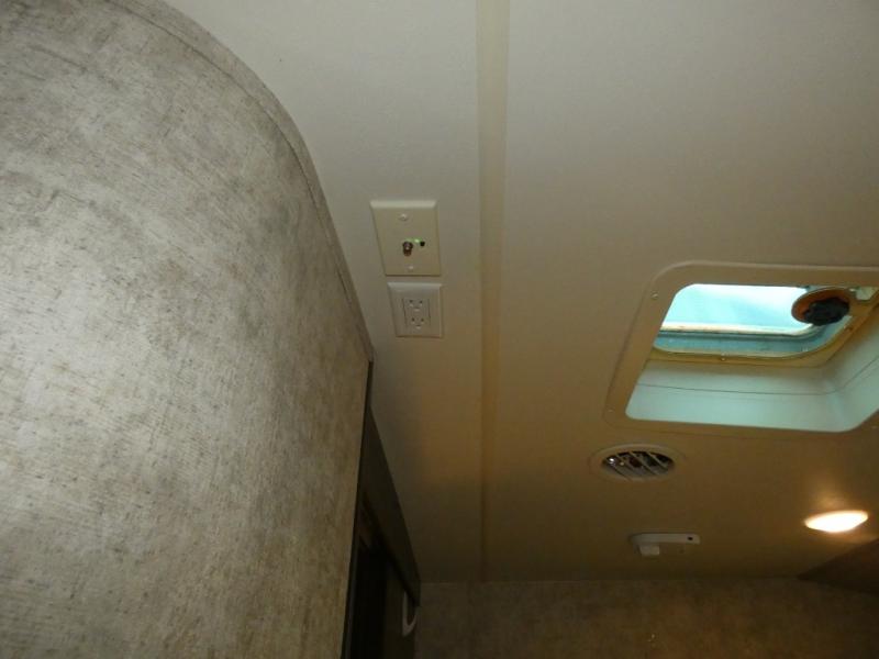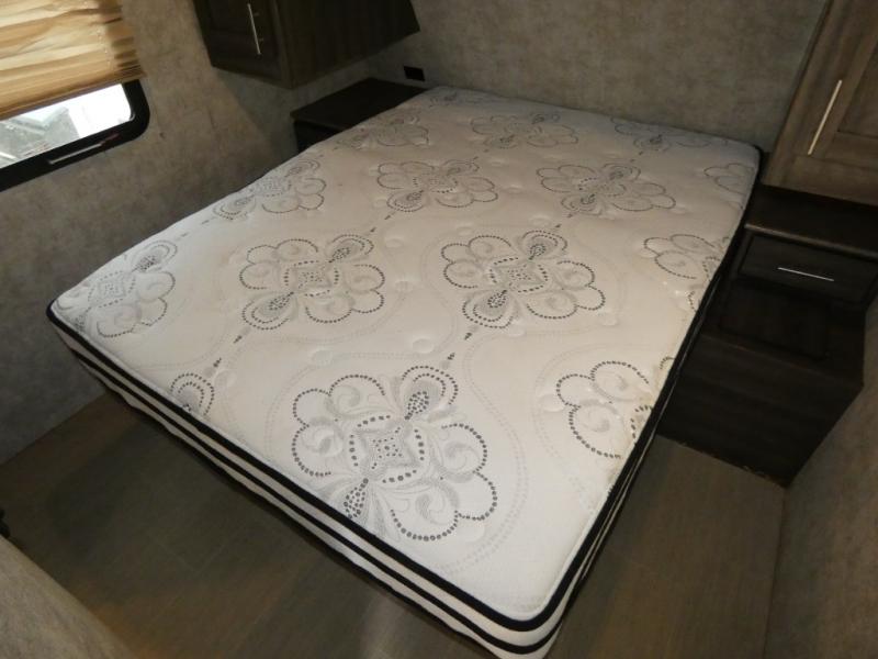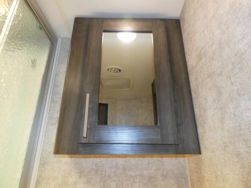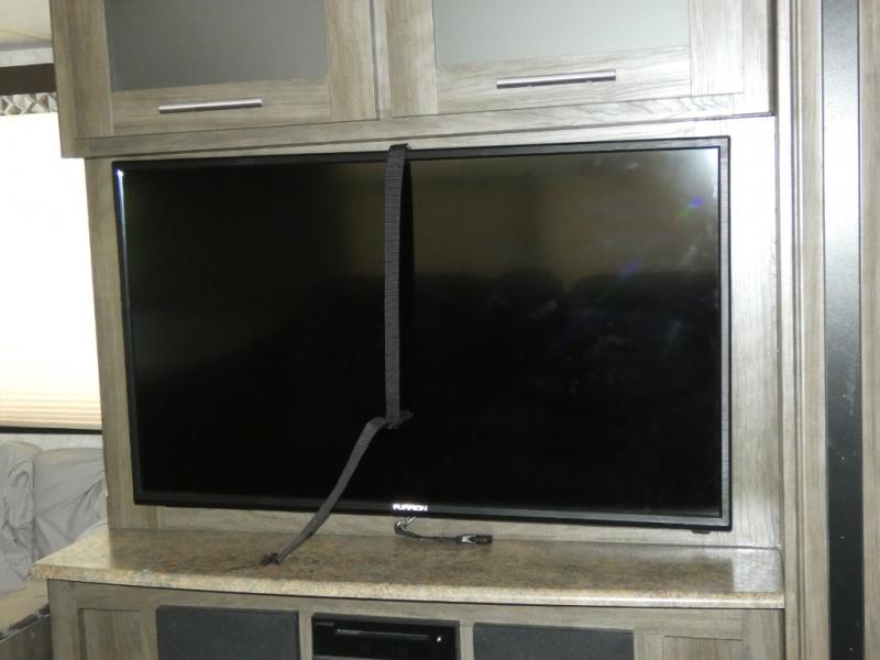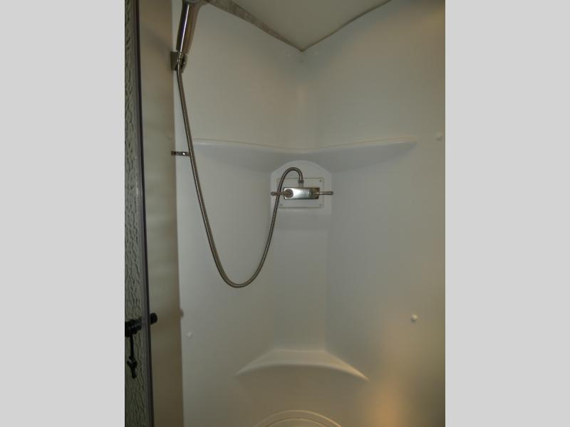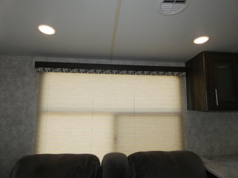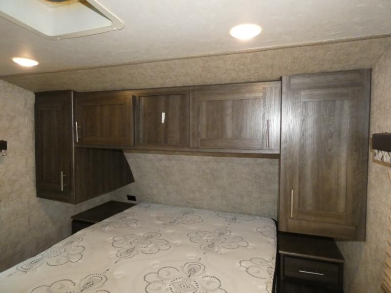 The single slide out allows you to play games or dine at the u-shaped dinette, and watch your favorite shows on the TV with entertainment center and fireplace below. There is a hutch along the interior wall providing additional storage.