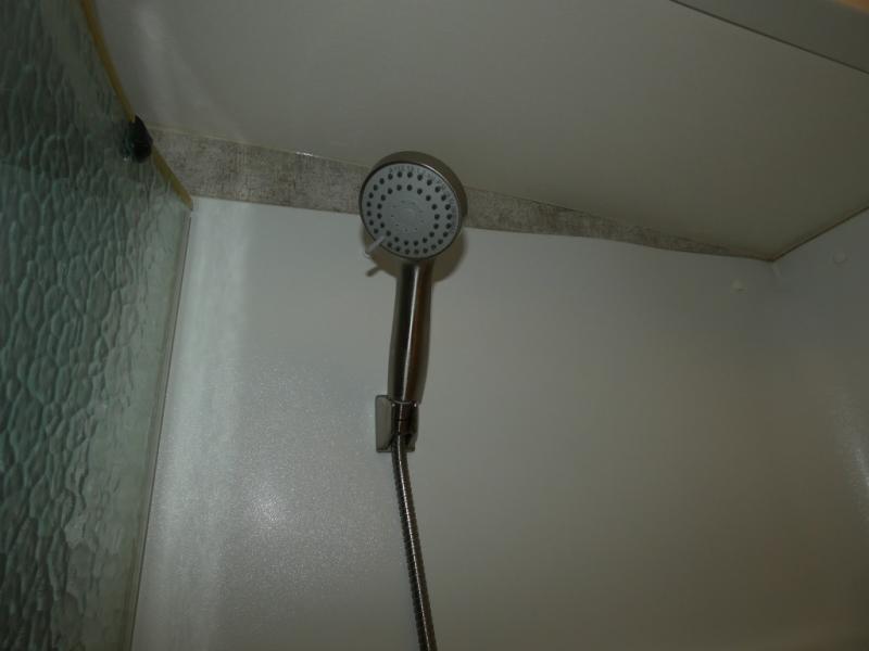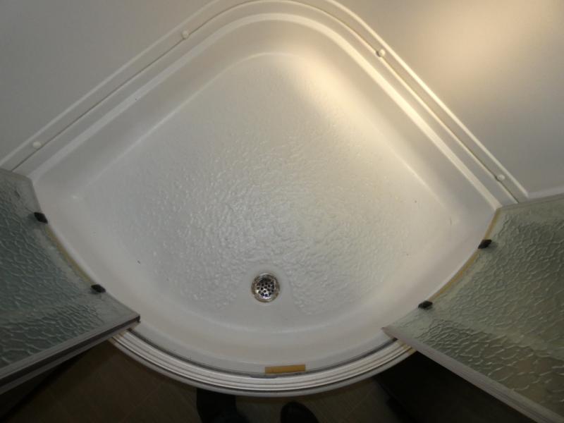 As you enter to your right you will see the bath and front bedroom door. The bath includes a radius shower, linen storage, sink, and a toilet. Plus there is a sliding entrance door from the front bedroom.
