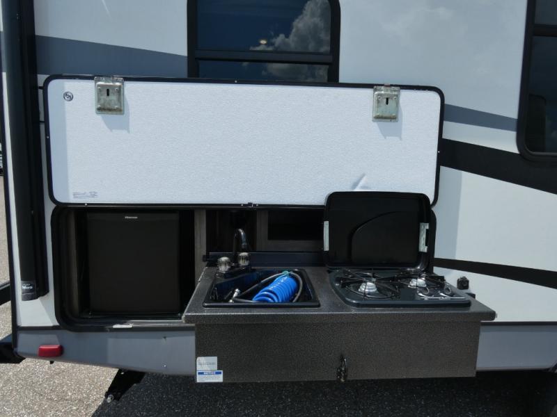 Don't forget about the outside kitchen including a two burner cooktop and sink, and the exterior pass through storage compartment up front, plus more!