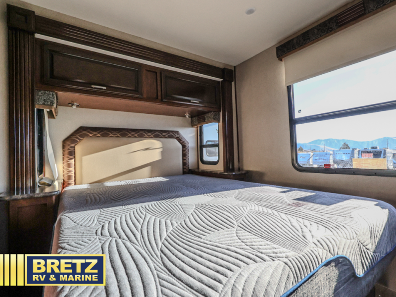 In the very rear of this coach you will find your own private master bedroom with slide out queen size bed including nightstands on either side. There is also a wardrobe/dresser opposite the bed, plus a 24" LED TV, additional wardrobe, and so much more!