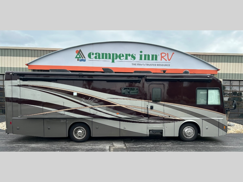 Enjoy traveling in this Solei class A diesel coach by Itasca featuring double slides for added interior space with the curb side slide being a full wall slide out.