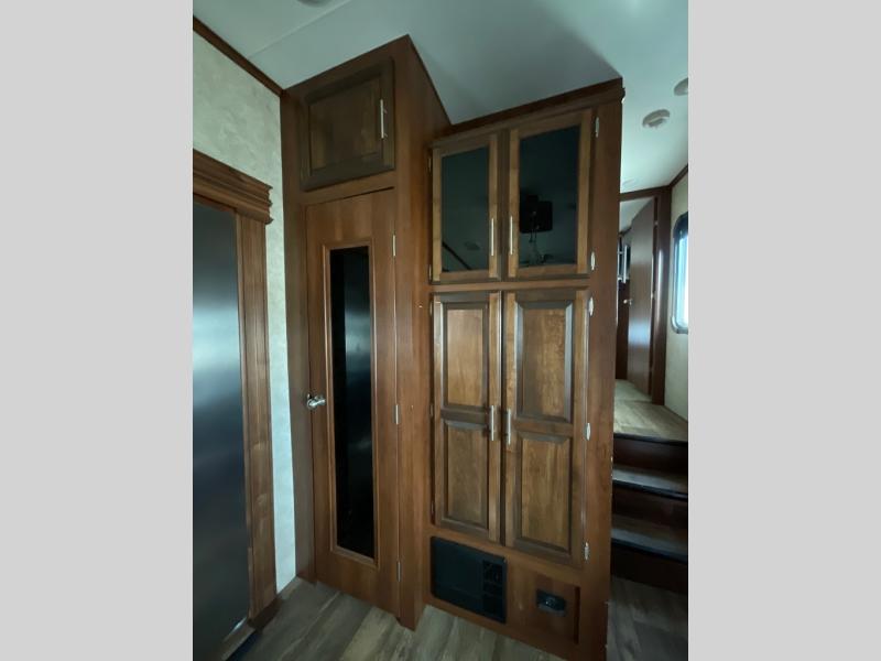 A few options inside include a table and chairs, theater seats, a king bed, and a 12 or 23 cu. ft. refrigerator.