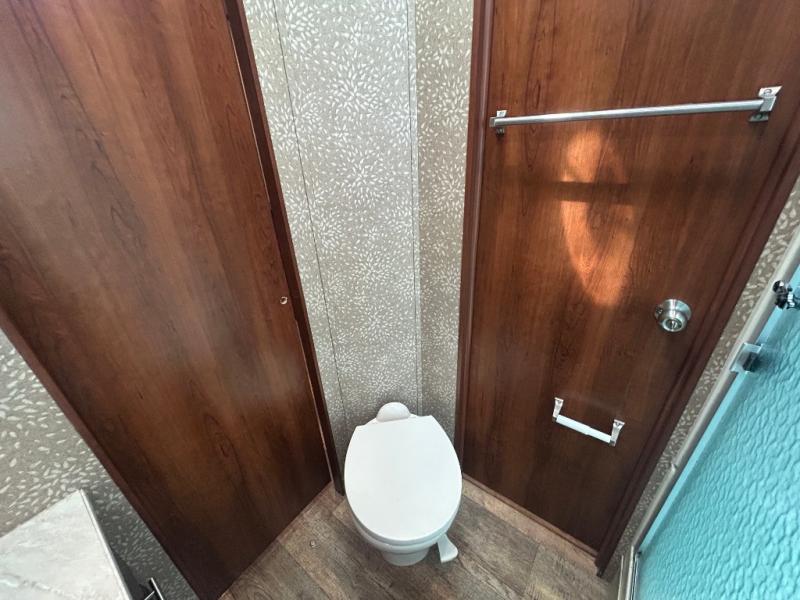 You will also find plenty of overhead cabinets throughout the travel trailer as well as notice that there is exterior storage on both sides of the trailer for your outdoor gear. Enjoy the shade of the 16' awning along the front half of the trailer and the optional 10' awning along the rear, and more!