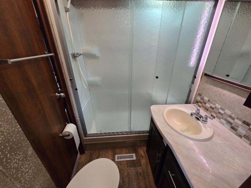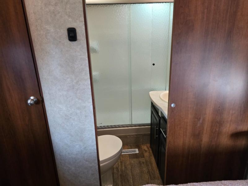 You will also find plenty of overhead cabinets throughout the travel trailer as well as notice that there is exterior storage on both sides of the trailer for your outdoor gear. Enjoy the shade of the 16' awning along the front half of the trailer and the optional 10' awning along the rear, and more!