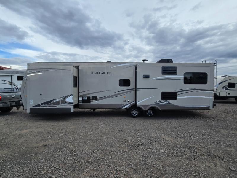 Looking for dual opposing slide outs in the living and kitchen area, a queen bed, and extra sleeping space for family and friends, look no more! This Jayco Eagle 338RETS travel trailer features all the above, plus more!