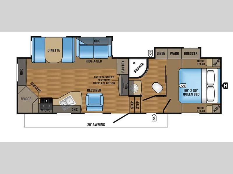 You will find plenty of overhead cabinets throughout as well as exterior storage, a 20' awning for shade when relaxing outside, plus much more inside and out!