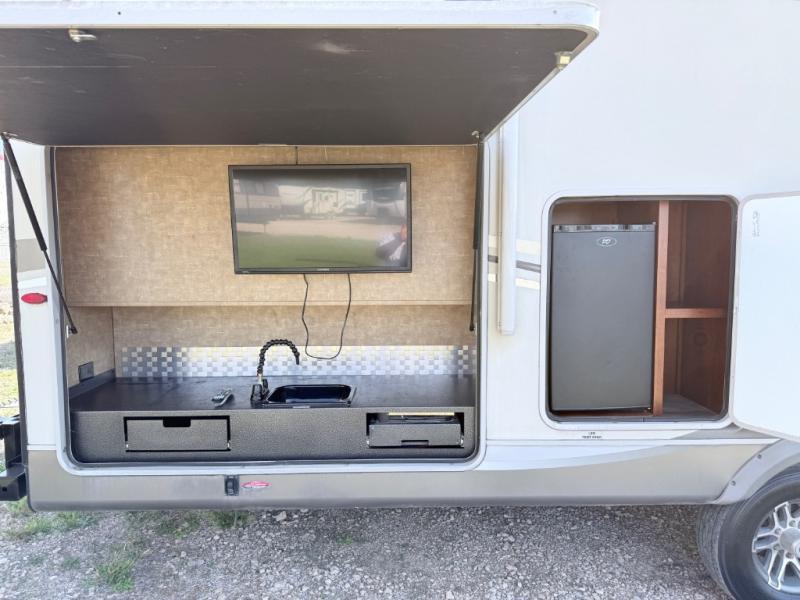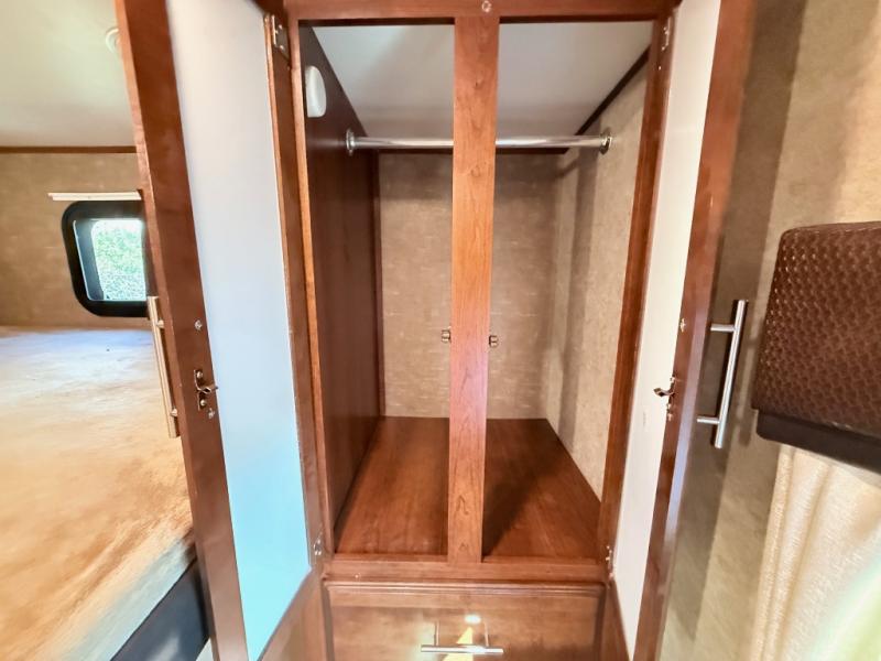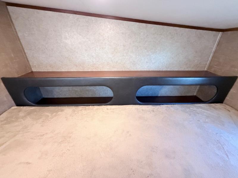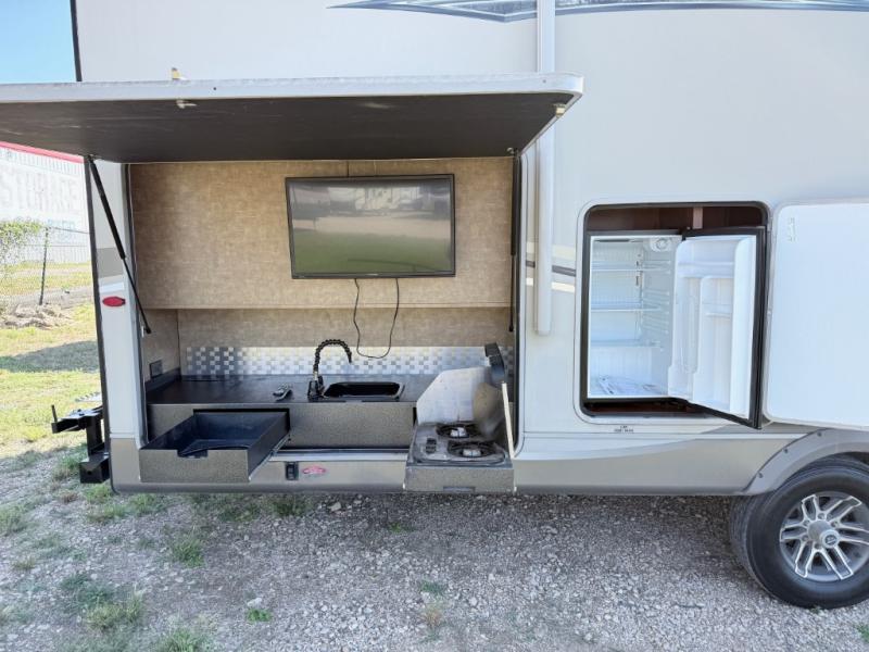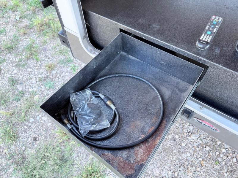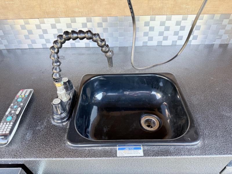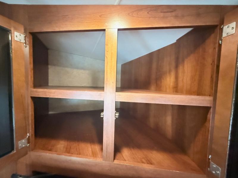 There are plenty of overhead cabinets throughout the inside of the fifth wheel as well as exterior storage. Outside you can even enjoy the exterior kitchen which has a sink, and a two burner cooktop. Plus there are many more features to love!
