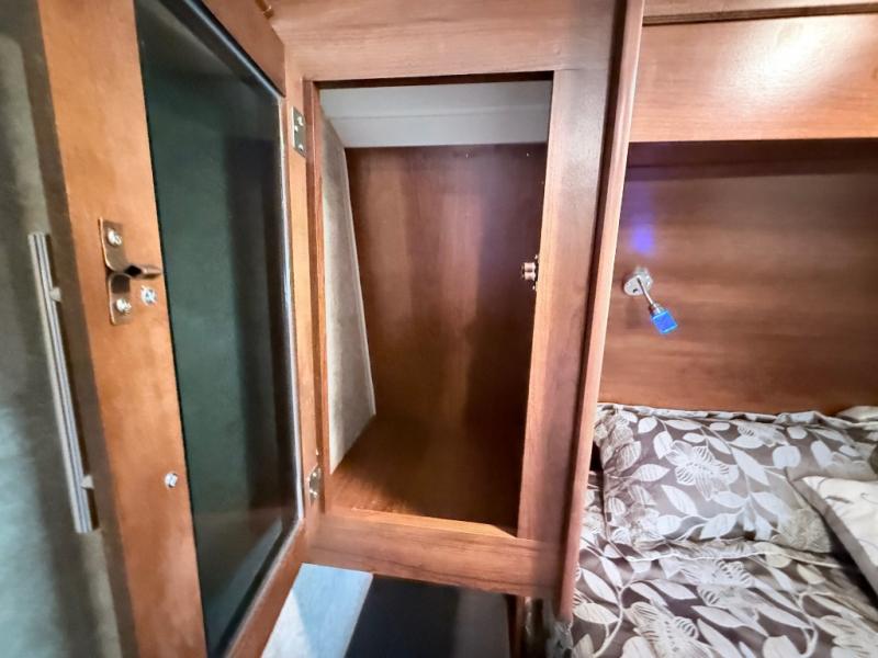 The rear bunkhouse offers a set of double size bunk beds and a wardrobe. The double size beds help to provide extra sleeping space for friends or family.