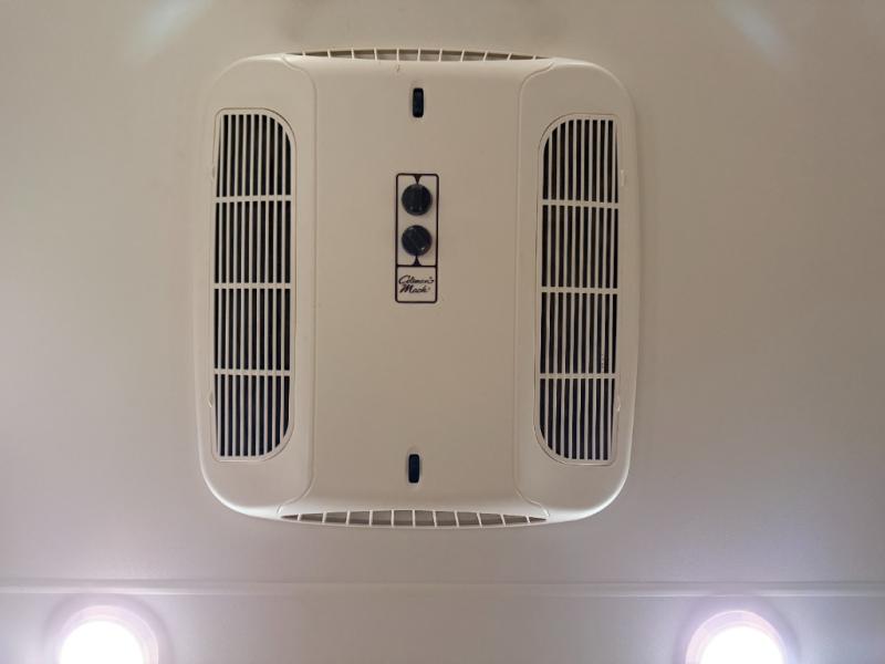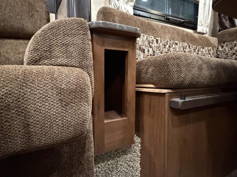 Along the opposite side of the expandable you will find a sofa slide out with end tables allowing more space in the kitchen/living area.