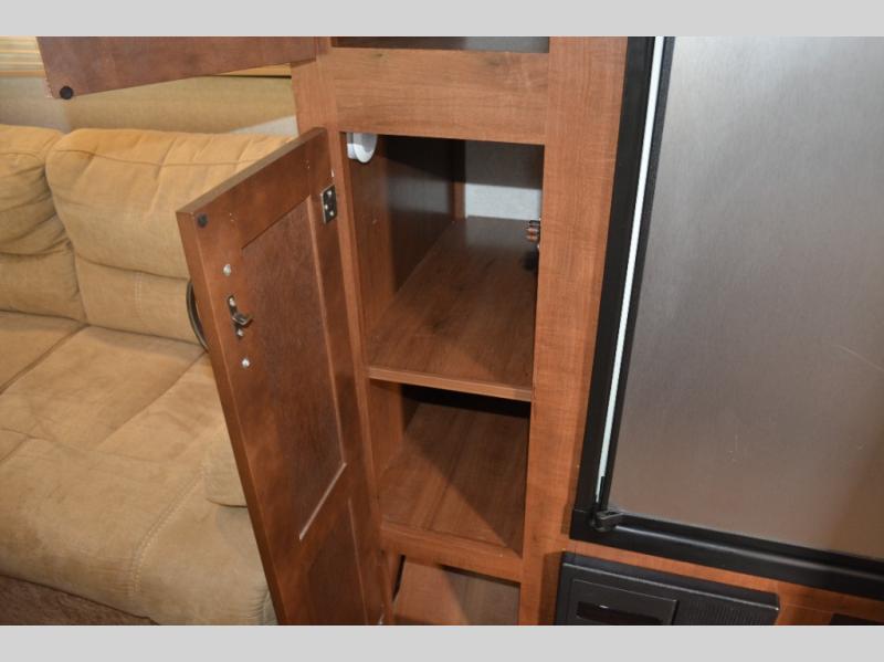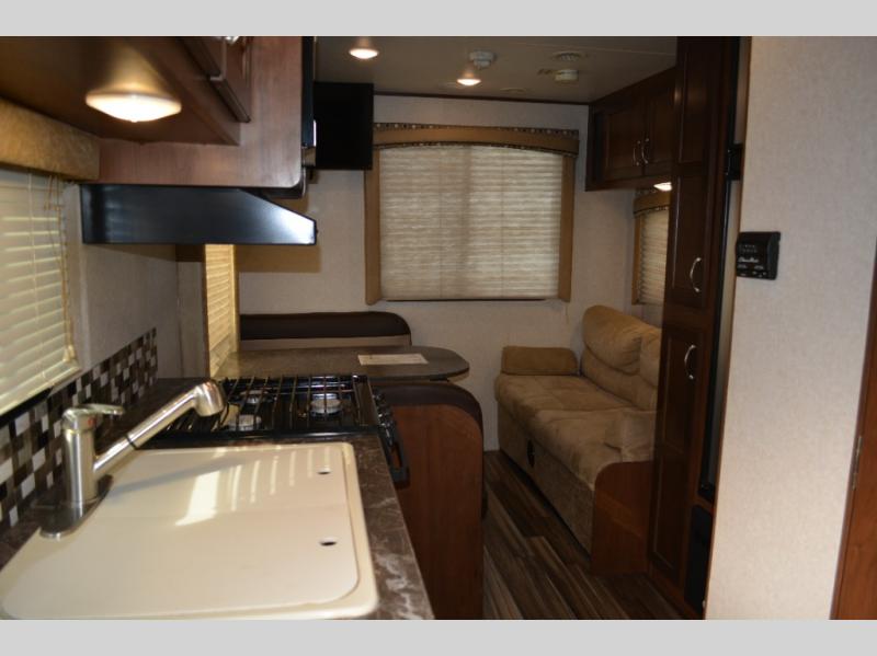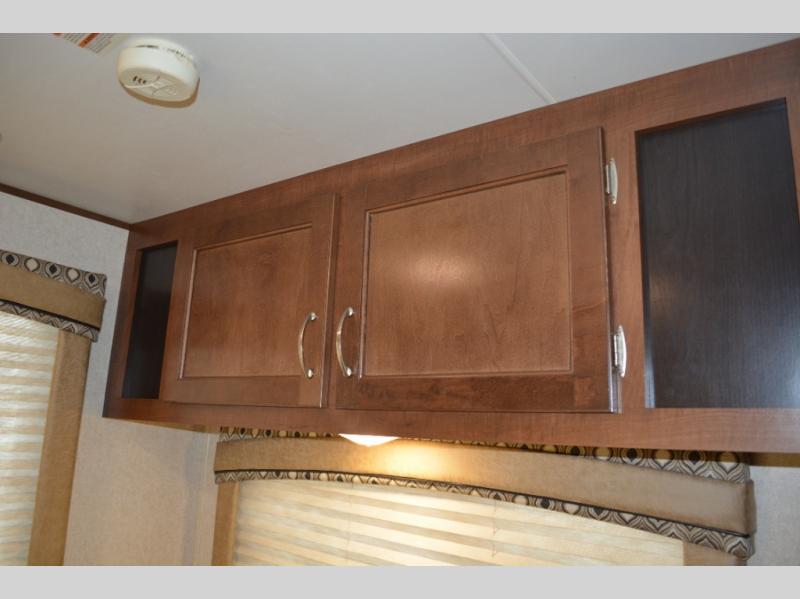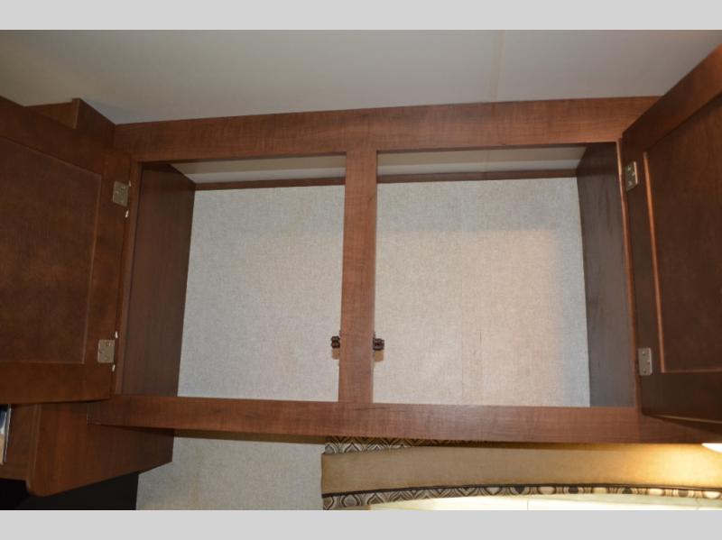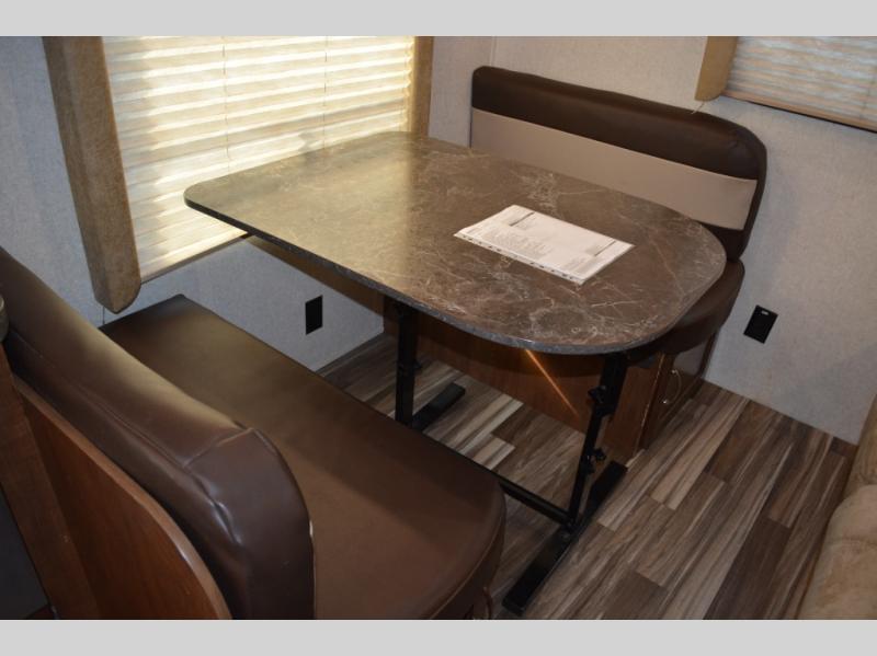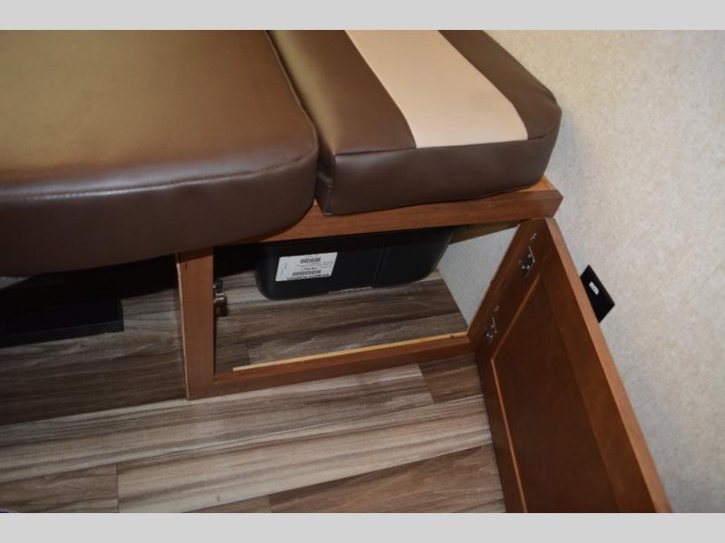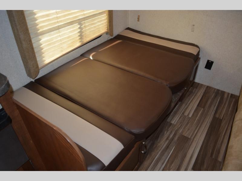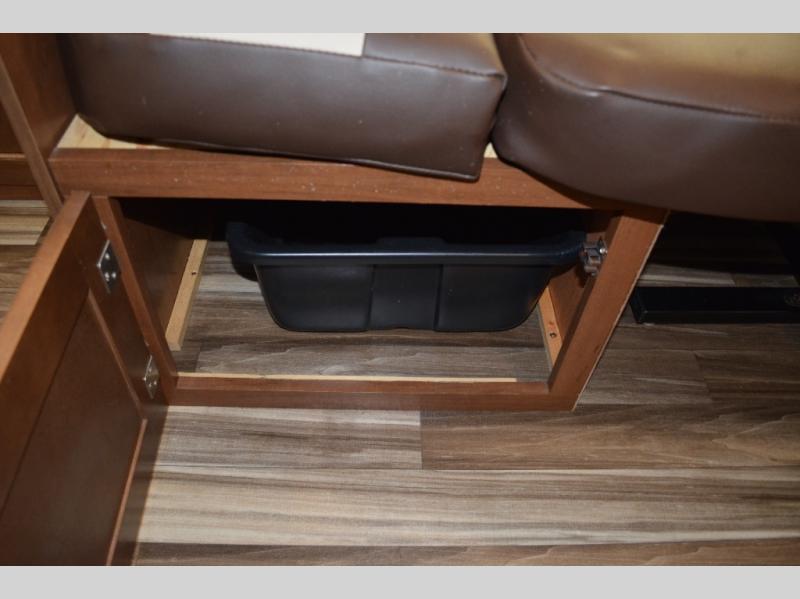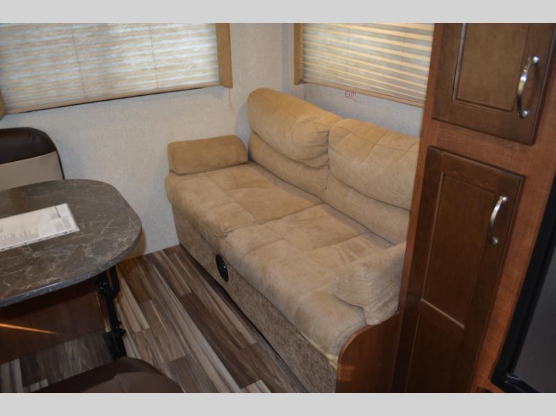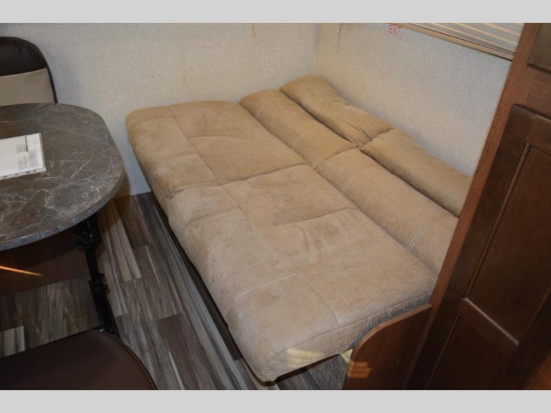 Enjoy meals at the dinette, and across from the dinette there is a sofa. Both the dinette and sofa feature an overhead cabinet, and both offer great seating options during the day, and at night these can be used for additional sleeping spots.