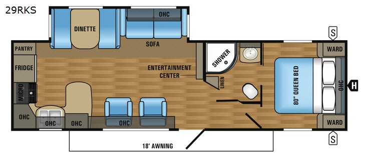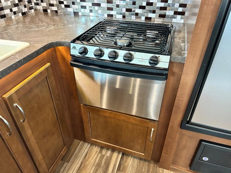 You can easily entertain guests inside this Jay Flight 29RKS travel trailer. With a rear kitchen you can easily fix meals and snacks and still be a part of the conversation in the main living area.