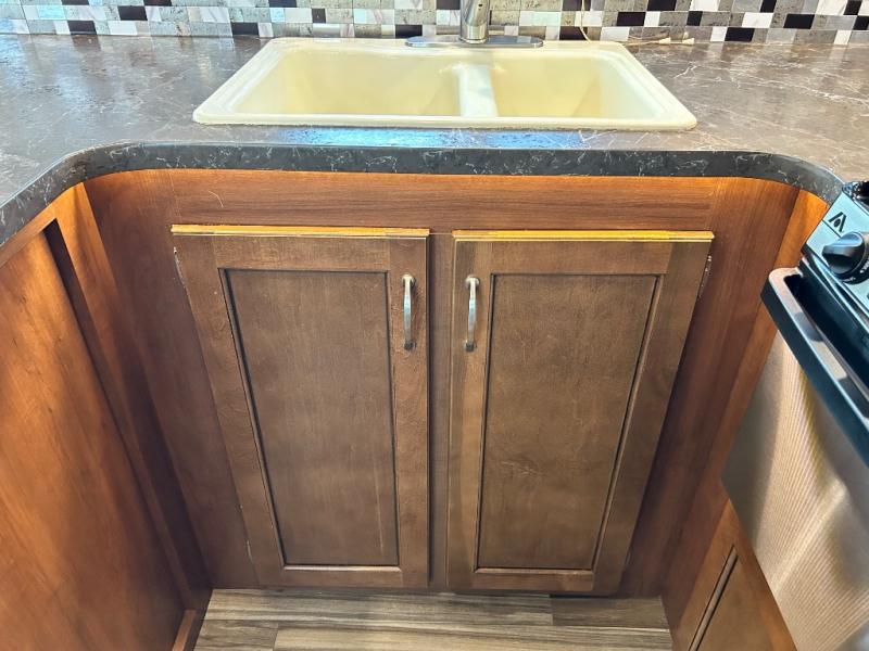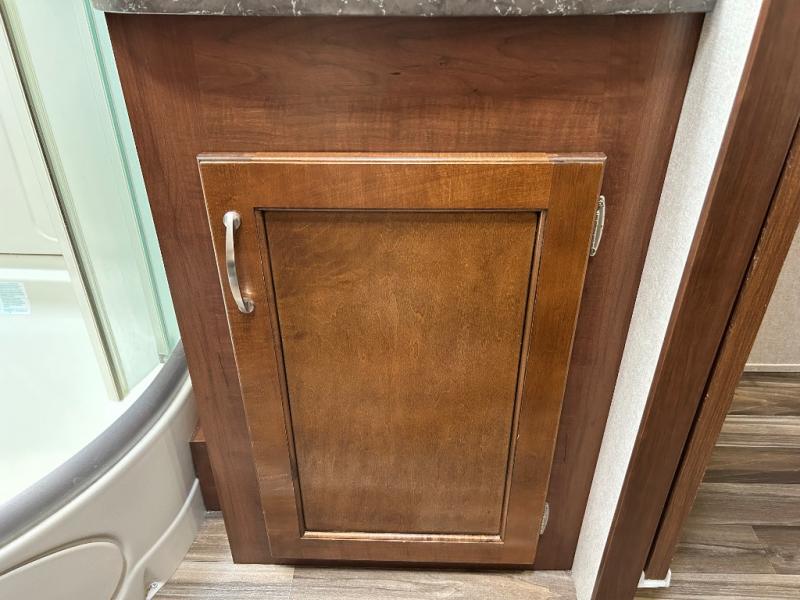 There are plenty of overhead cabinets throughout the trailer as well as exterior storage. You can even choose an optional patio door in place of the standard door, and more!