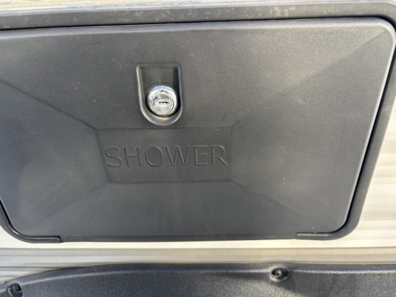 In the kitchen area clean up is a breeze with the double kitchen sink. You can fix your meals at the three burner range and overhead microwave. Above the sink, dishes can be stored in the overhead cabinet. Across from the stove there is a refrigerator and a pantry.