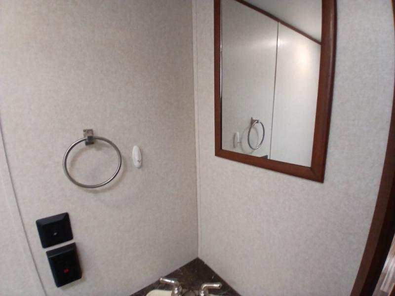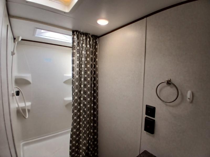 Heading toward the rear, and you will come to the bathroom. Here you can easily get ready for your day of adventure. You will find that the bathroom has a sink, toilet, and a tub/shower.