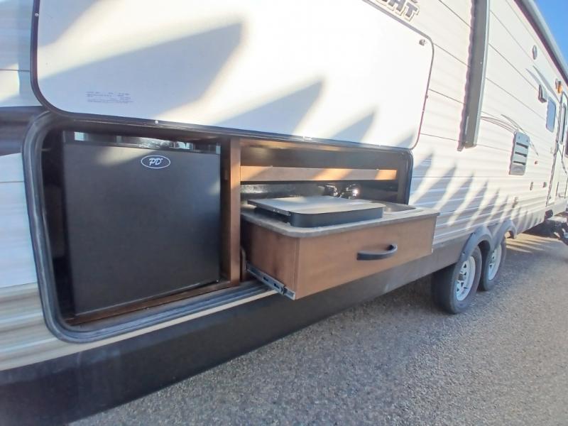 Maybe you are a beginner at camping, or you have been doing this for a while. In either case, this Jay Flight SLX 284BHSW travel trailer by Jayco is for you. This model features a single slide out, a set of double bunk beds, and an outdoor kitchen, plus so much more!