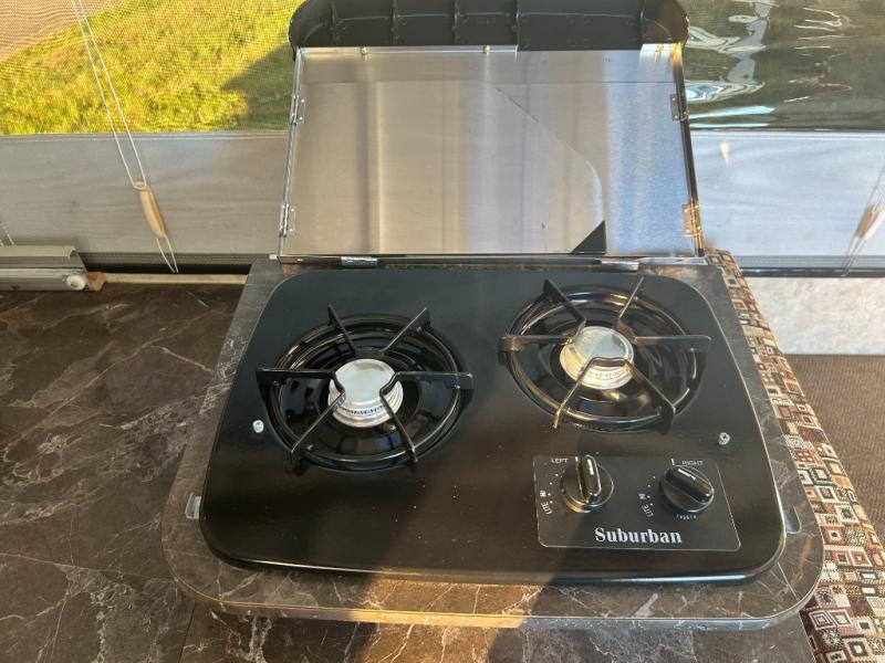 Outside you can enjoy meal prep with a carryout two burner stove, and more!