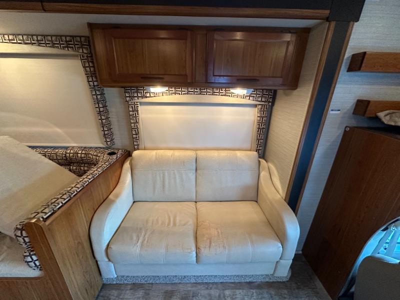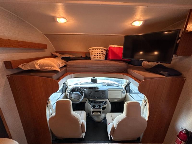 In the front of the motor home, you will also find a cab over bunk and an overhead TV.