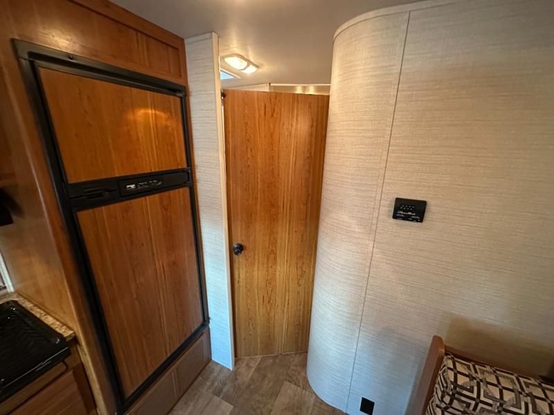 The rear bedroom is very spacious and has a comfortable queen bed, nightstand, and wardrobe. Easily close off the bedroom from the rest of the motor home with the accordion door for a bit more privacy.