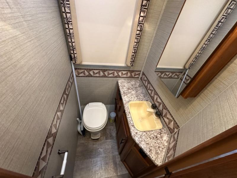 There are plenty of overhead cabinets throughout the motor home as well as exterior storage. You are also sure to enjoy the 16' awning and the shade it provides from the outside elements, and more!