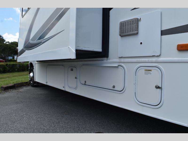 There are plenty of overhead cabinets throughout the motor home as well as exterior storage, and a 10' 8" awning, plus more!