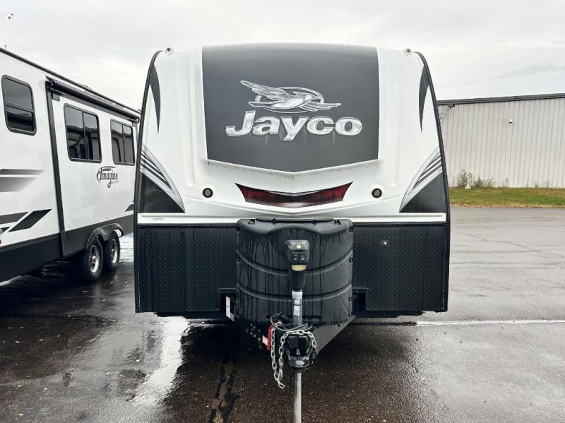The 27DSRL White Hawk travel trailer by Jayco features a private front bedroom, a walk-through bath, dual entry, plus so much more!
