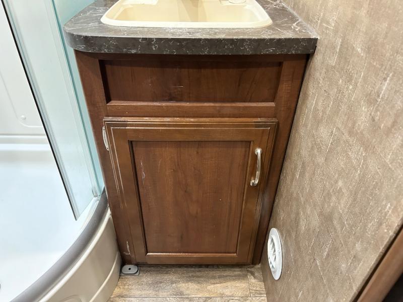 What I liked most: This bathroom has a large shower, lots of storage and a good sized sink. The double slide has mostly kitchen appliances which makes it a convenient.